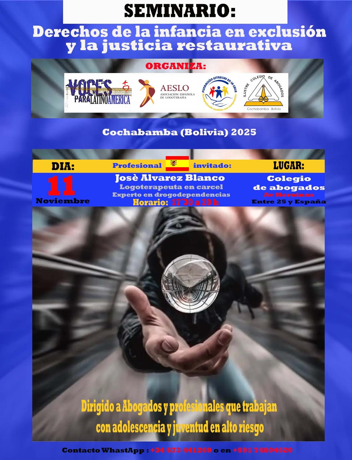 Lugar: Colegio de abogados – avda. Heroinas (entre 25 y España) – Cochambamba (Bolivia)