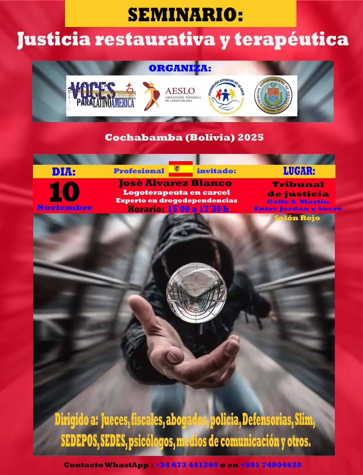 Lugar: Tribunal de Justicia – Calle S. Martin (entre Jordan y Sucre) – Salón Rojo. – Cochambamba (Bolivia)